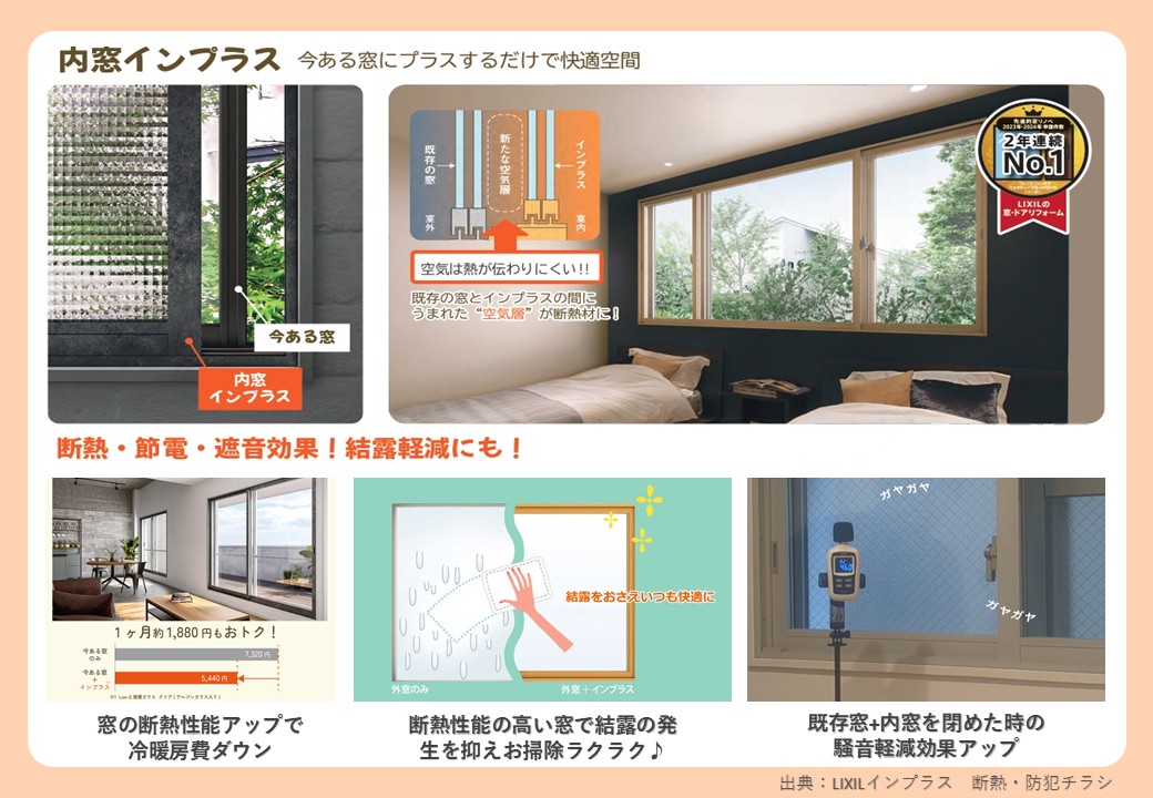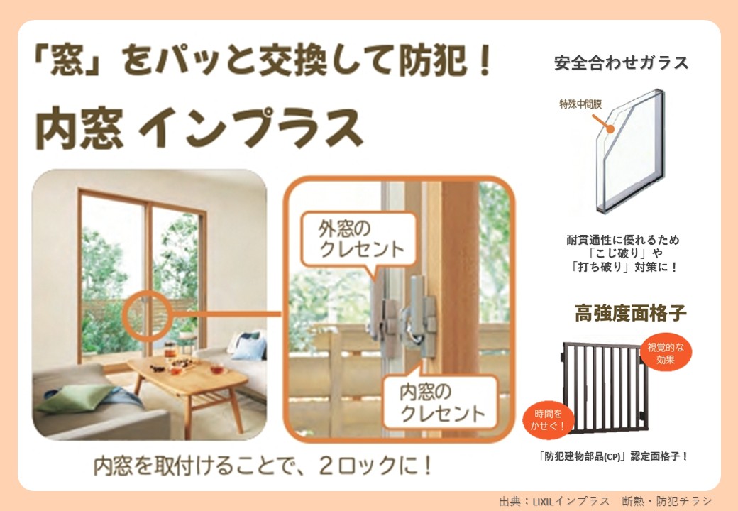 LIXILの内窓インプラスは、防犯性はもちろん、快適な暮らしを実現するためのリフォームとしても効果的です。