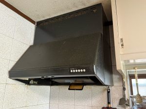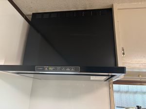 渋川市 レンジフード工事〈リンナイ レンジフード ノンフィルタースリム型 TLRシリーズ 幅750 高さ調整式 TLR-3S-AP752BK(ブラック)〉