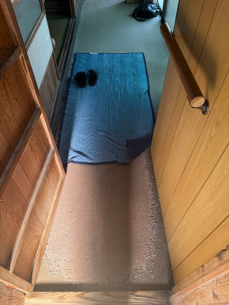トイレへ続く広縁です。 トイレの漏水で広縁に貼ってありましたカーペットが濡れていたんでしまったため