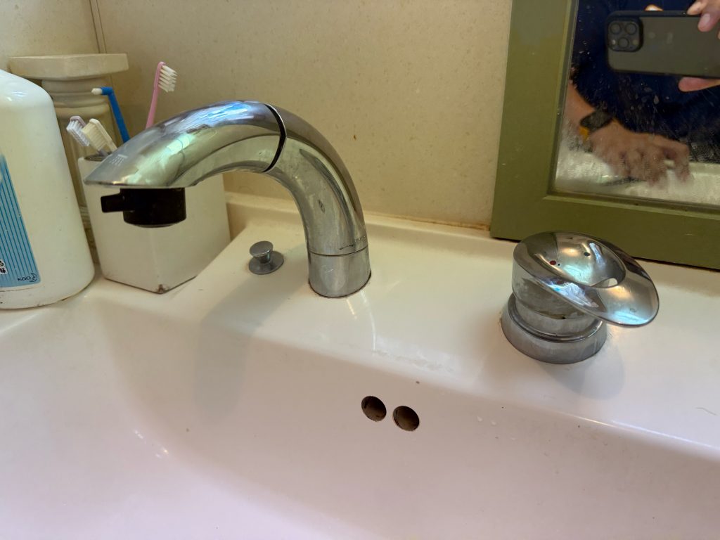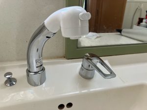 渋川市 洗面台水栓工事〈KVK シングル洗髪シャワー傾斜水栓〉