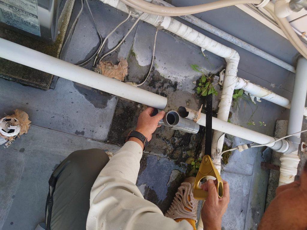 ※排水管が老朽化でかけてしまいました。継手を交換し蓋を付けました。