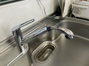 前橋市 キッチン水栓交換工事〈KVK KM5031TEC・シングルシャワー付き混合栓〉