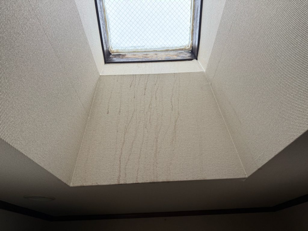 室内天井にシミと湿気が見られ、雨の日に滴下する症状が発生していたため、早急な対応が必要な状況でした。