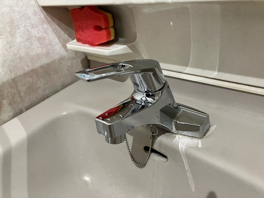 吉岡町にて、洗面水栓の交換工事を行いました。