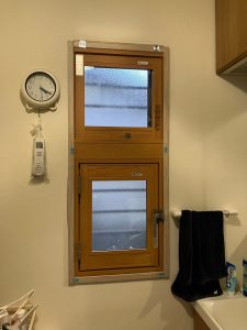元の窓は、ハンドルをくるくる回転させて開閉させるタイプの「ルーバー窓」でした。