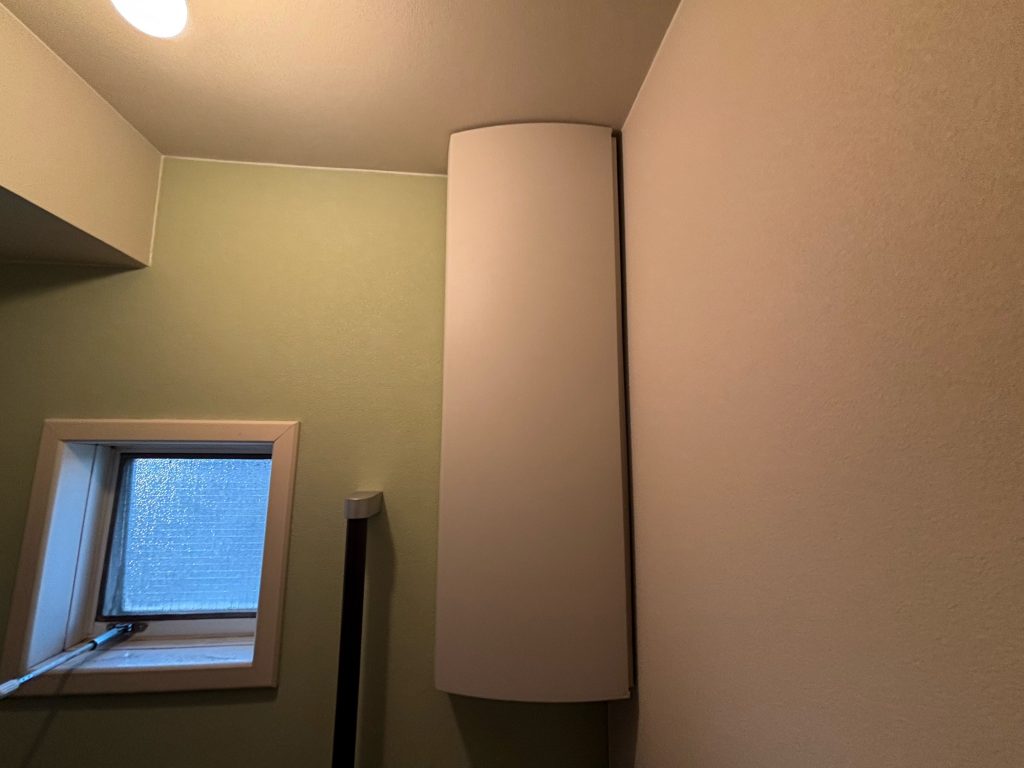 ・階段下という限られた空間に 明るいベージュは空間を広く見せ、淡いグリーンは清潔感を底上げします