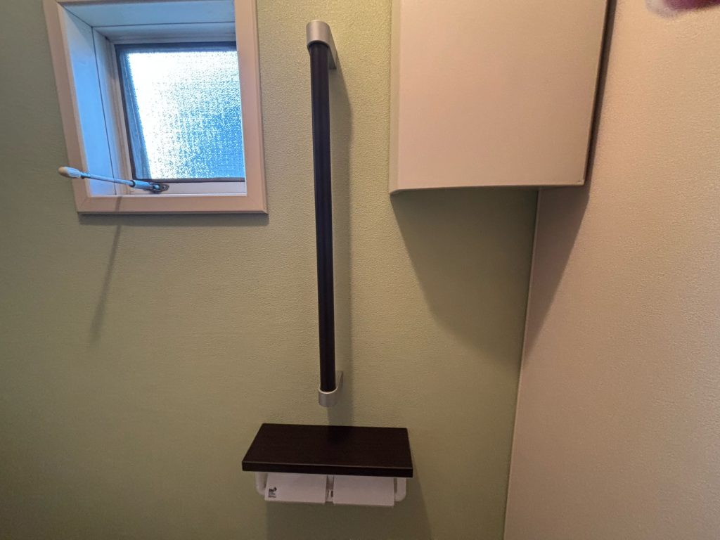 ・手摺と紙巻器の色目をクリエダークにすることで、より一層「ナチュラル」な雰囲気がでました。