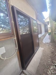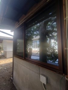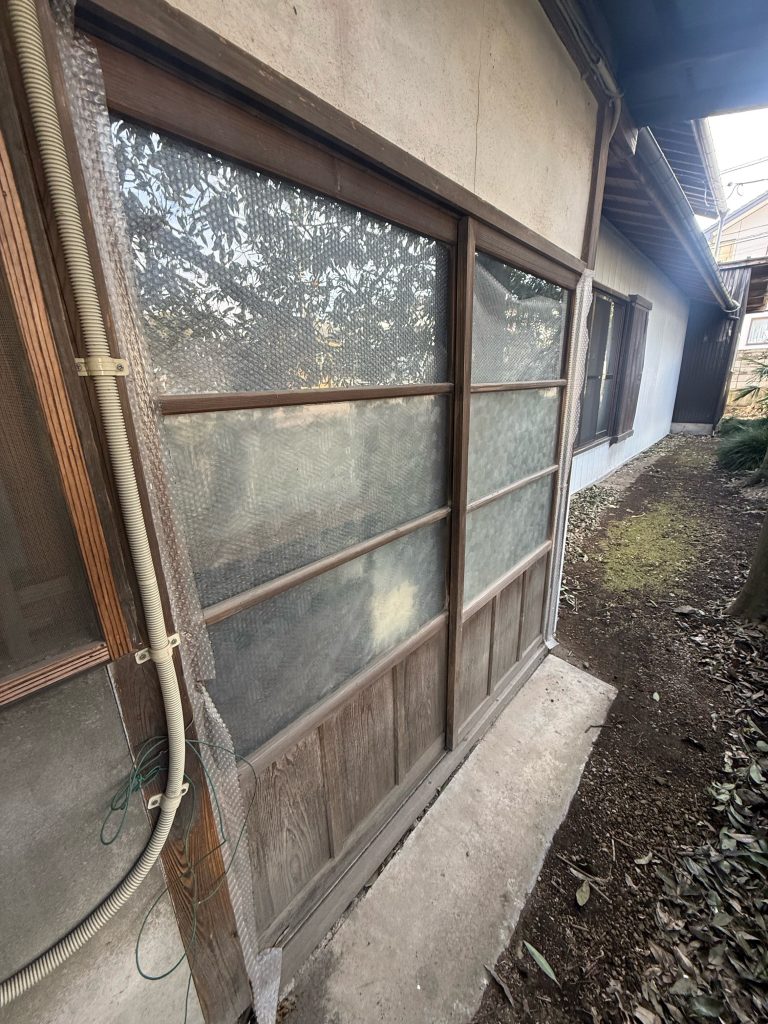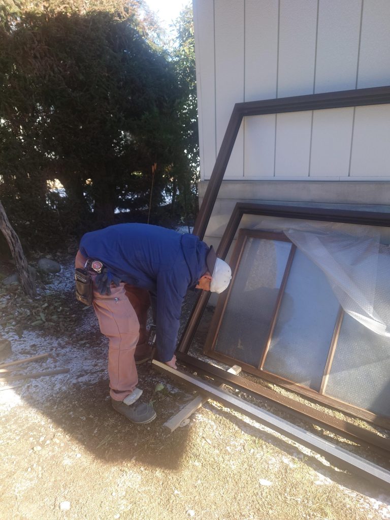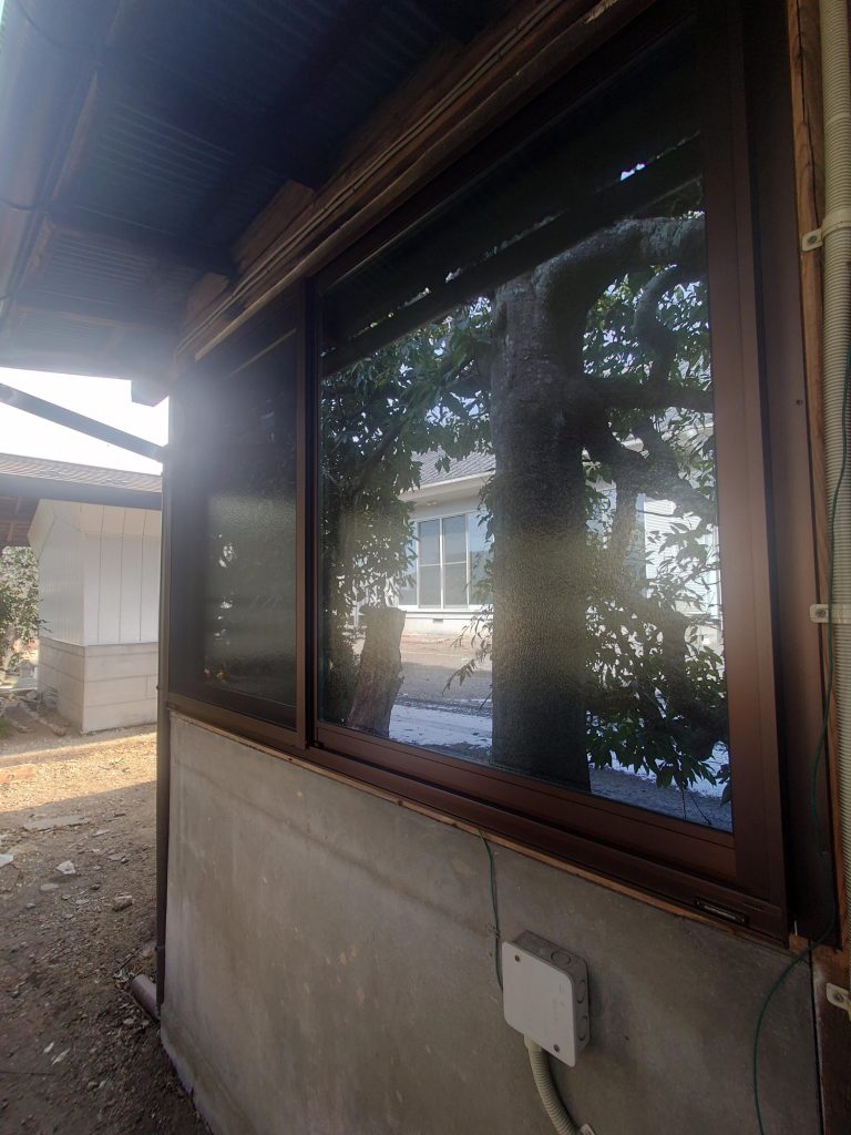 窓枠を丁寧に調整し 新しい引戸・窓がぴったりとはまって、隙間風を防いでいます。