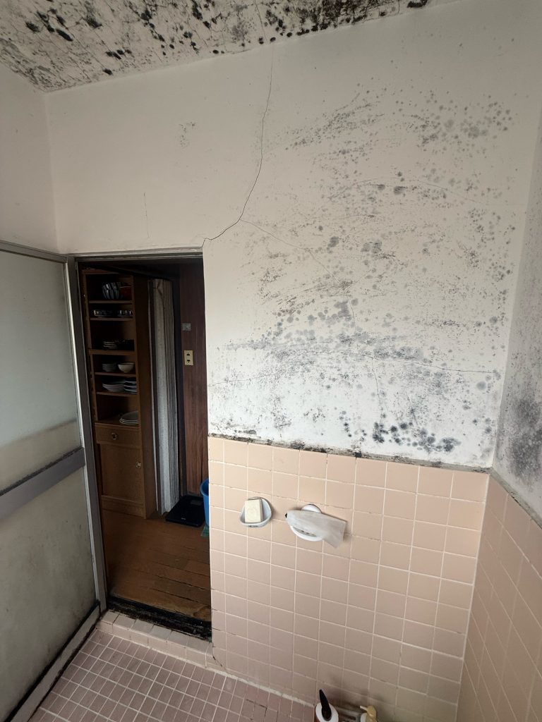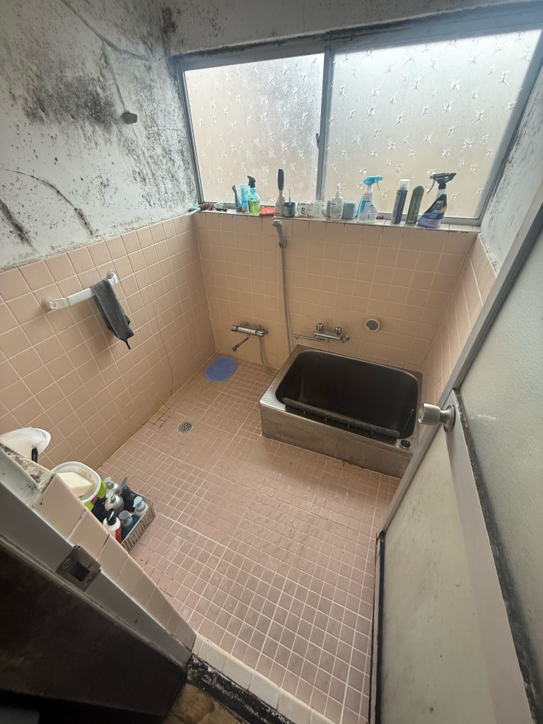 「白壁タイルの浴室」見た目はレトロで可愛いのですが、びっしり生える頑固な黒カビがもう限界でした。