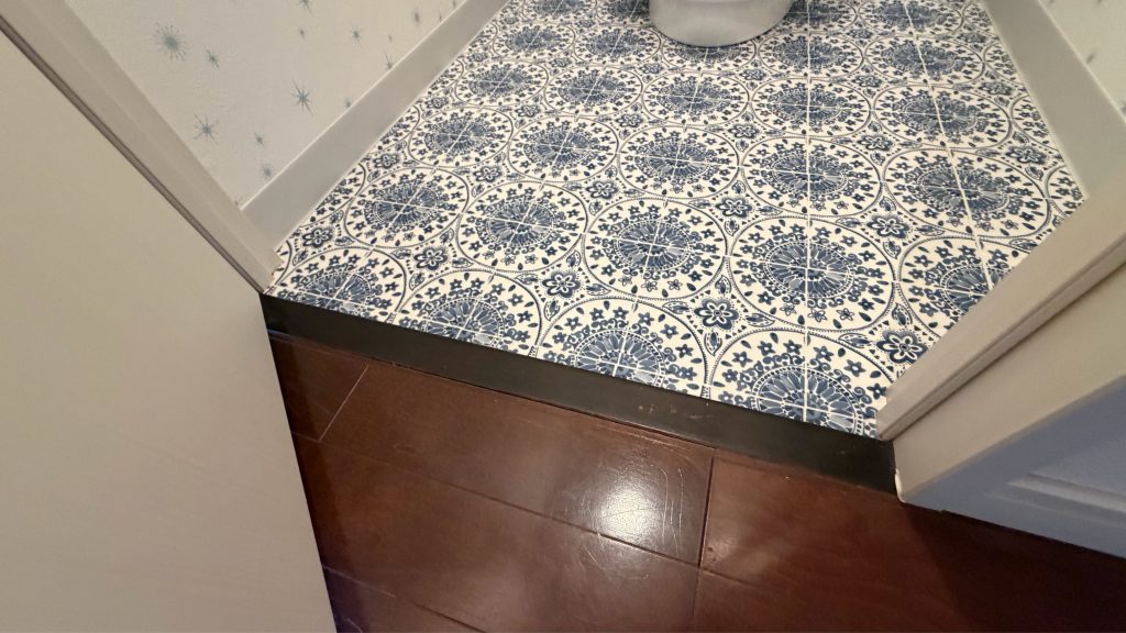 モロッカン風な幾何学模様のクッションフロアが、空間全体の「おしゃれ度」を一気に引き上げています。