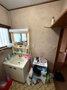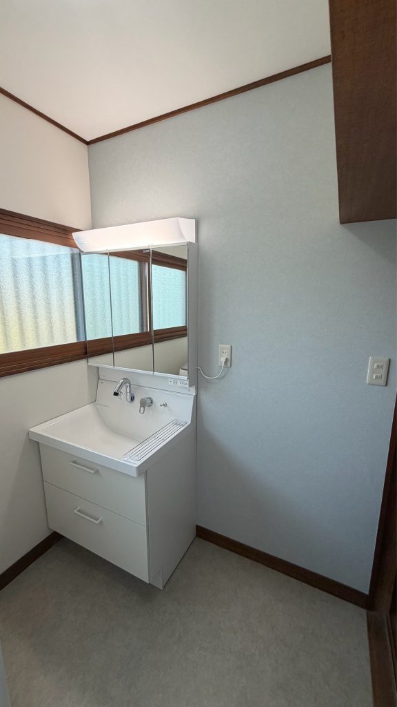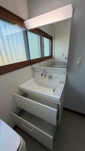 渋川市 脱衣室工事〈LIXIL 洗面台 ピアラ三面鏡 W750 オールスライド〉