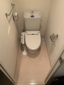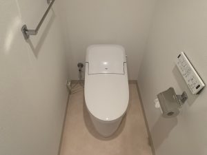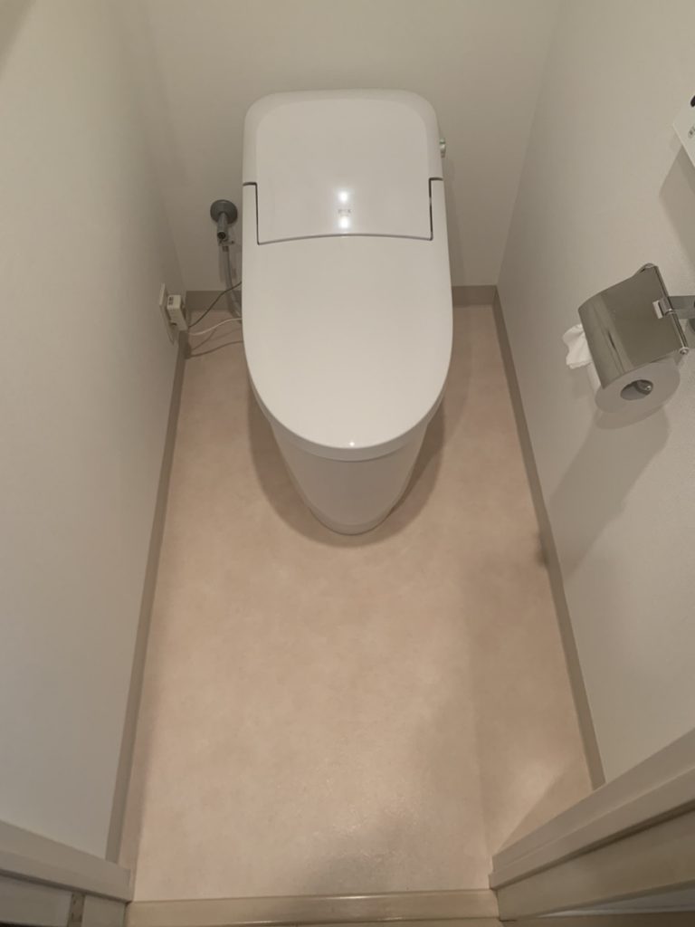 トイレをリクシルプレアスLSに交換と、オプションにて天井・壁のクロス張替え、床のクッションフロア張替えもさせていただきました。