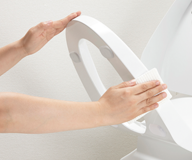 • 【キレイ便座】 汚れが入りやすいつぎ目がありません。さらに便座裏は防汚素材で、汚れもサッとひと拭き。お掃除ラクラク。
