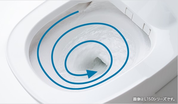 • 水流をコントロールする独自の形状で、内面全体をぐるりと洗う「スパイラル水流」。少ない水量で高い洗浄力を発揮します。※写真はL150シリーズです。